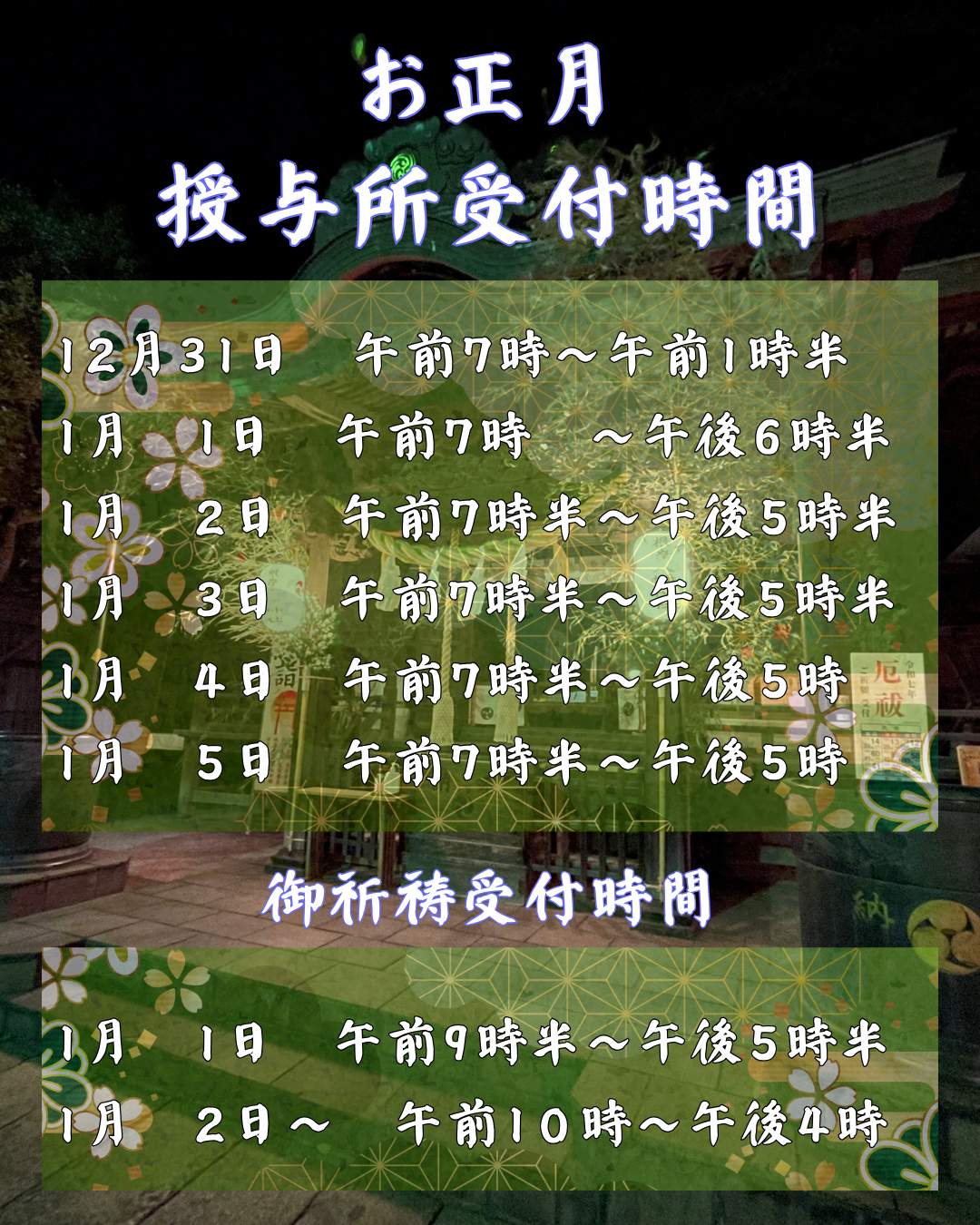 お正月授与所受付時間